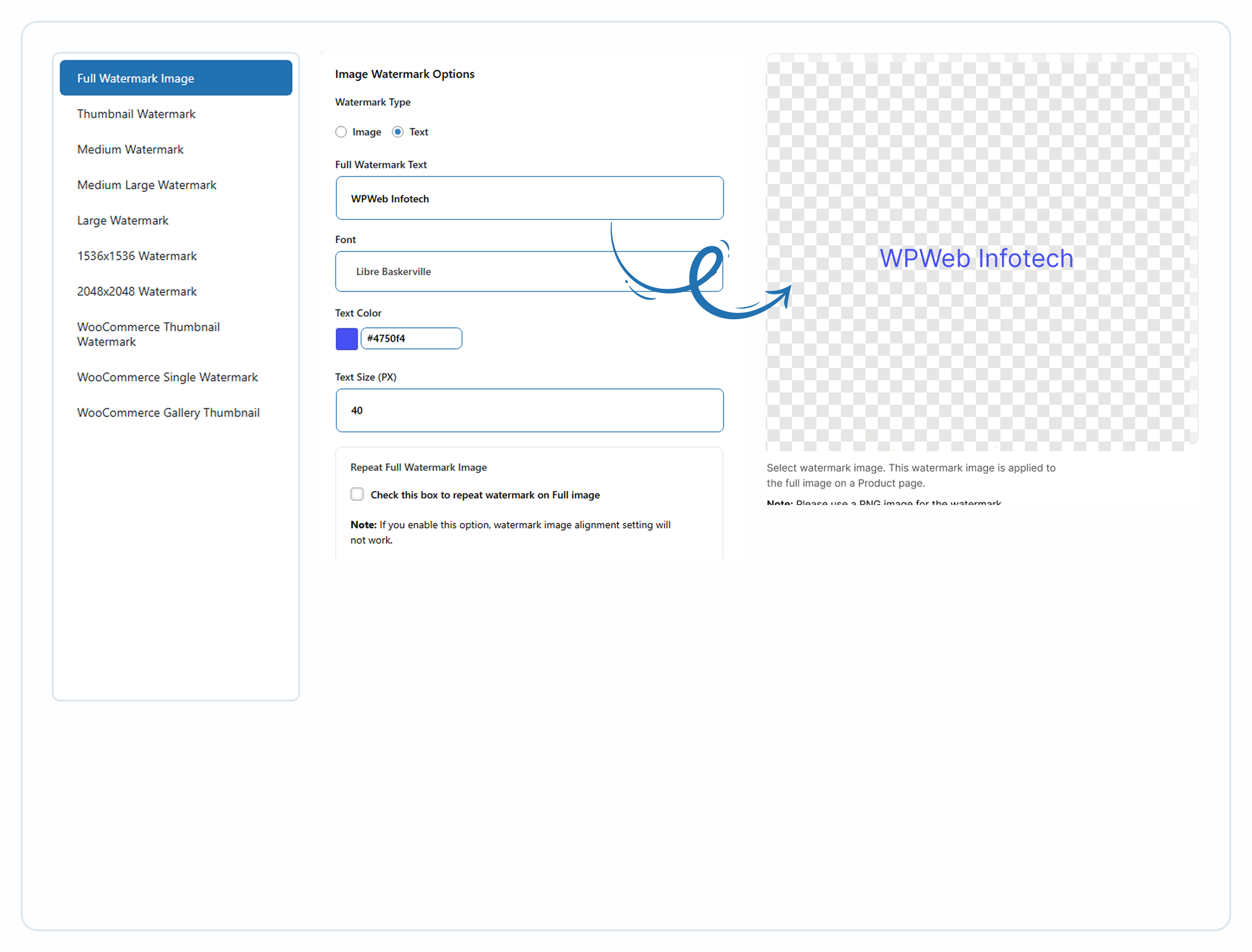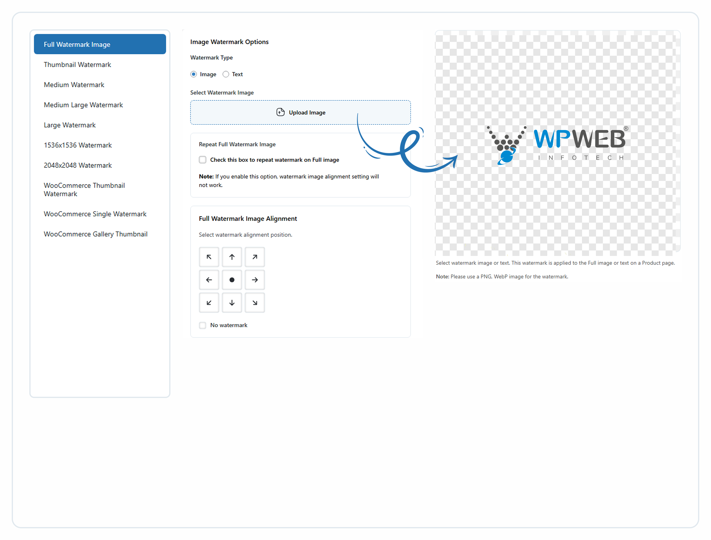 Product Image Watermark for Woo plugin allows you to apply watermark on WooCommerce products images which should be a downloadable products. These watermarks can be an image copyright symbol, company logo or piece of branding text as a transparent PNG or Webp image.